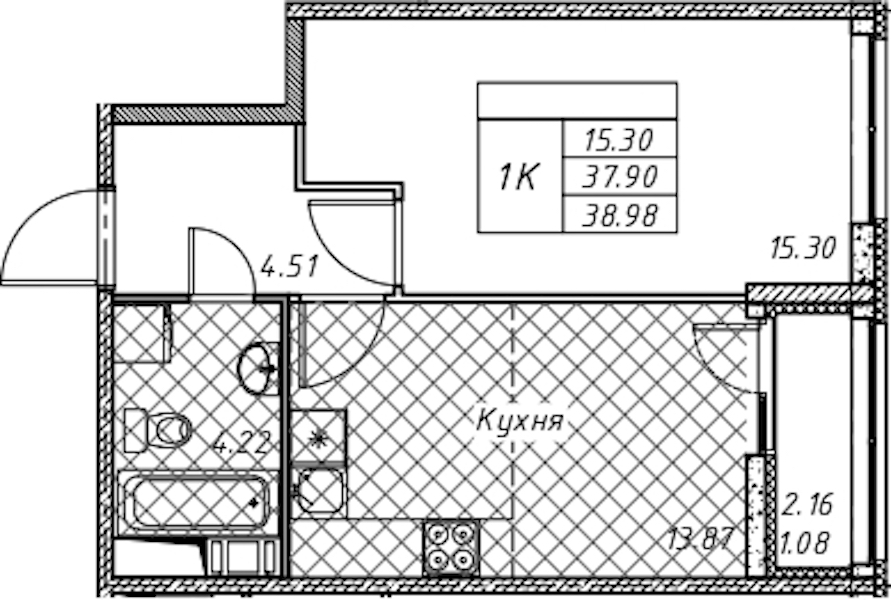• Площадь38,98 м2
