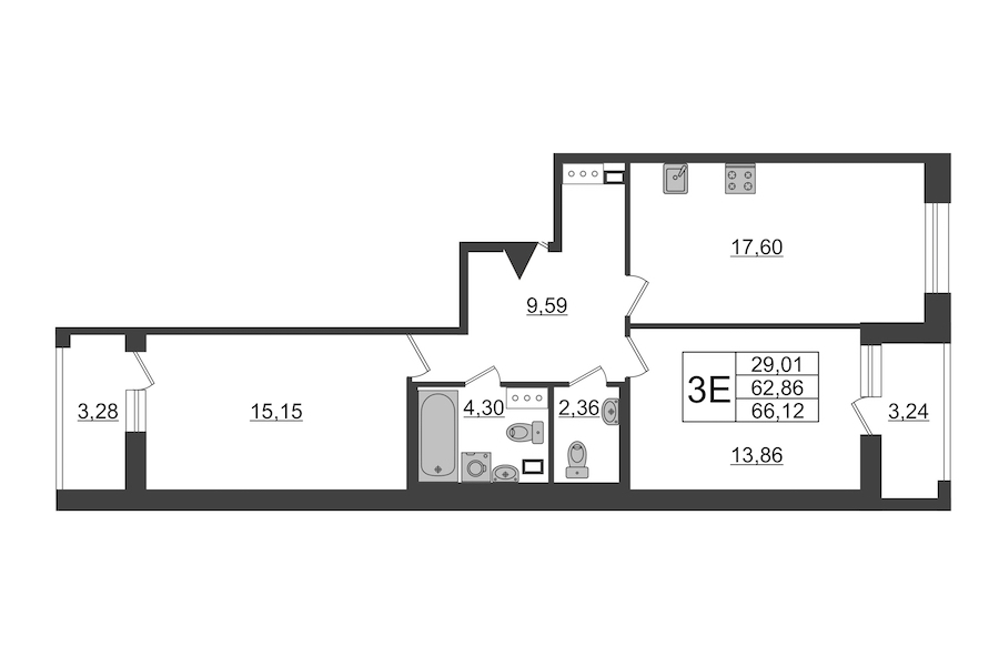 - Площадь кухни17,5 м2
