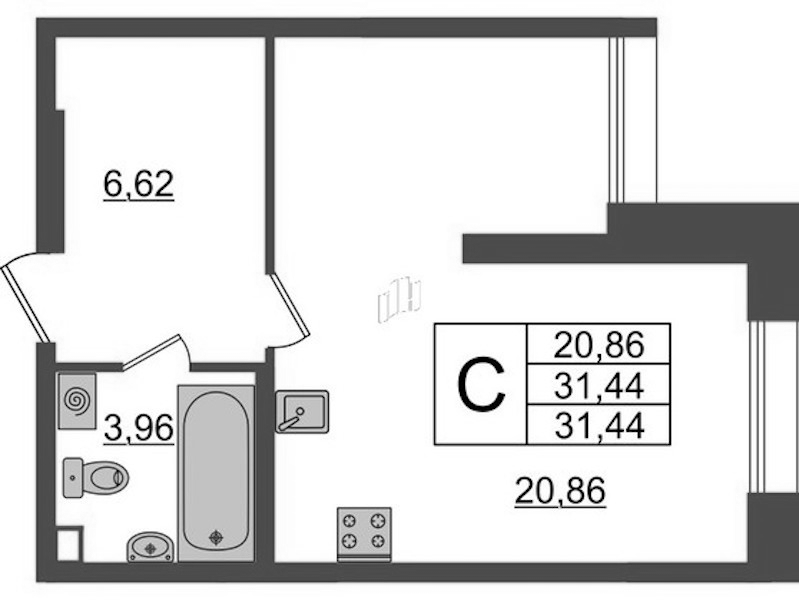 Квартира-студия на 1-ом этаже 31,44 кв.м