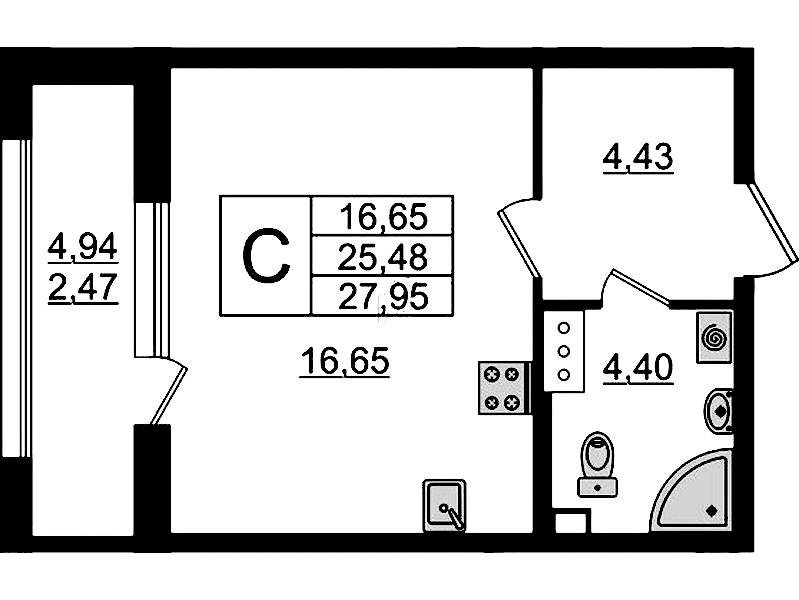 Квартира-студия на 7-ом этаже 27,88 кв.м