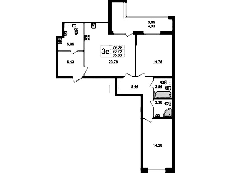 • Площадь85,63 м2