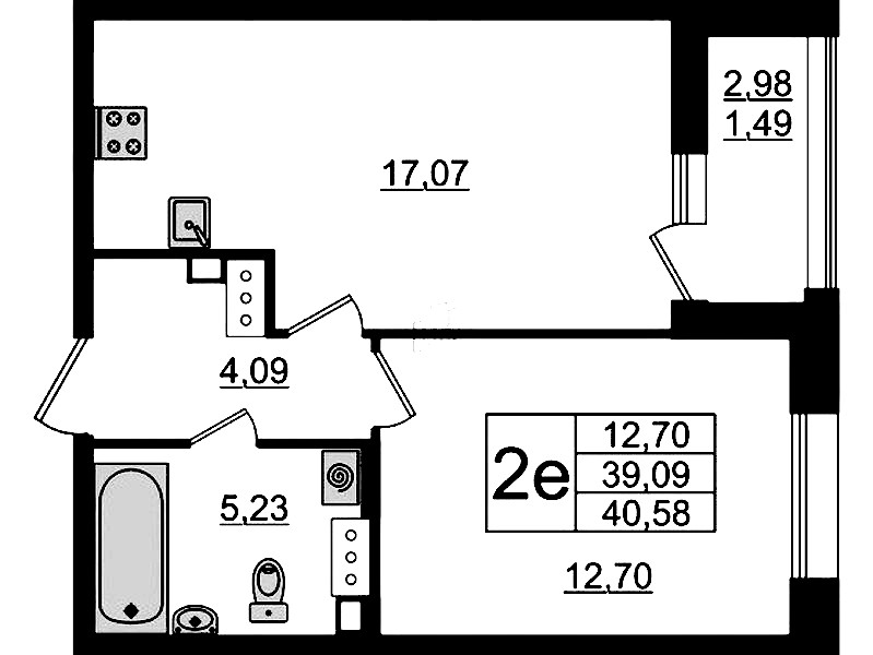 - Площадь40,58 м2