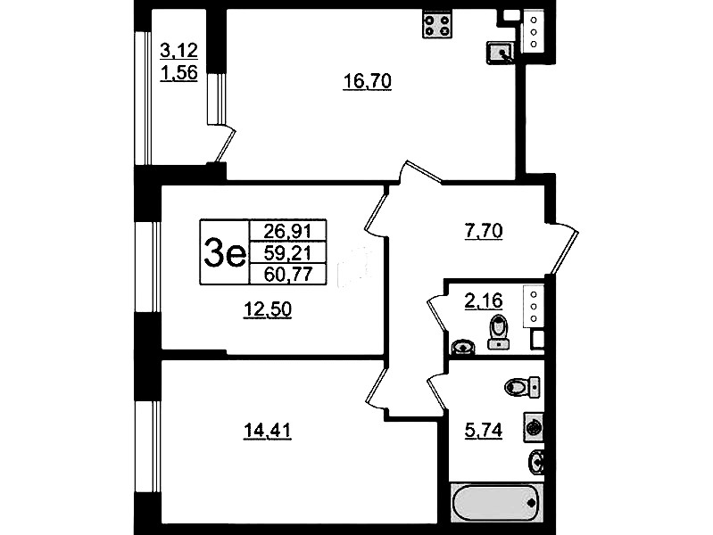 • Площадь60,77 м2