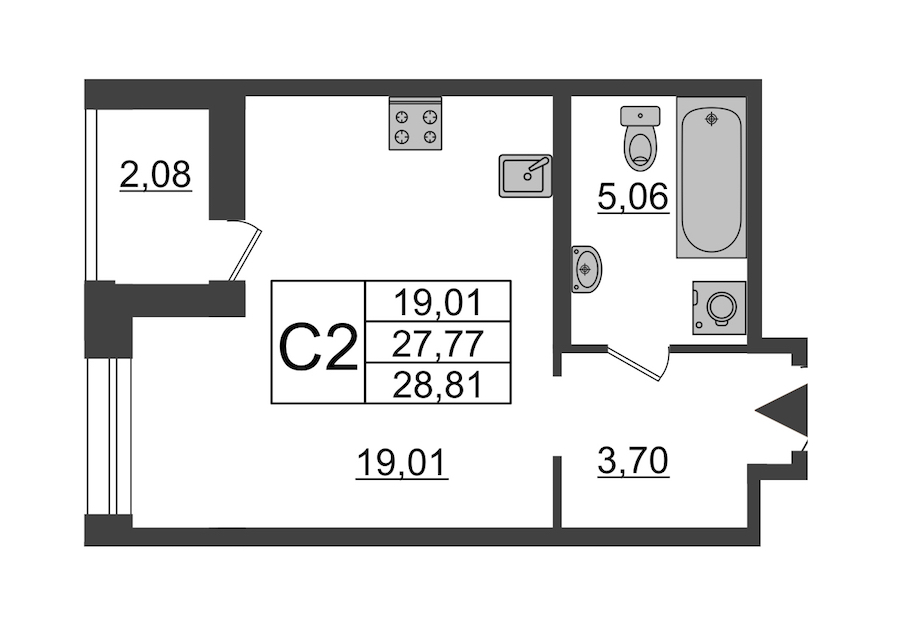 Квартира-студия на 2-ом этаже 29,9 кв.м