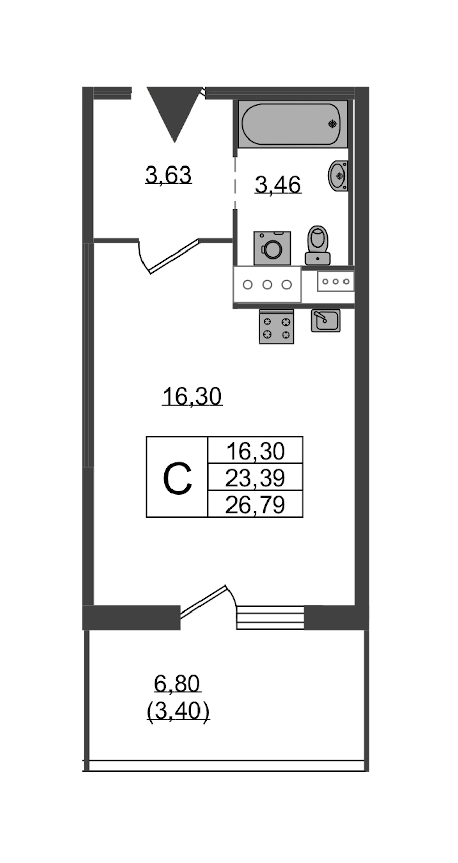- Площадь26,79 м2