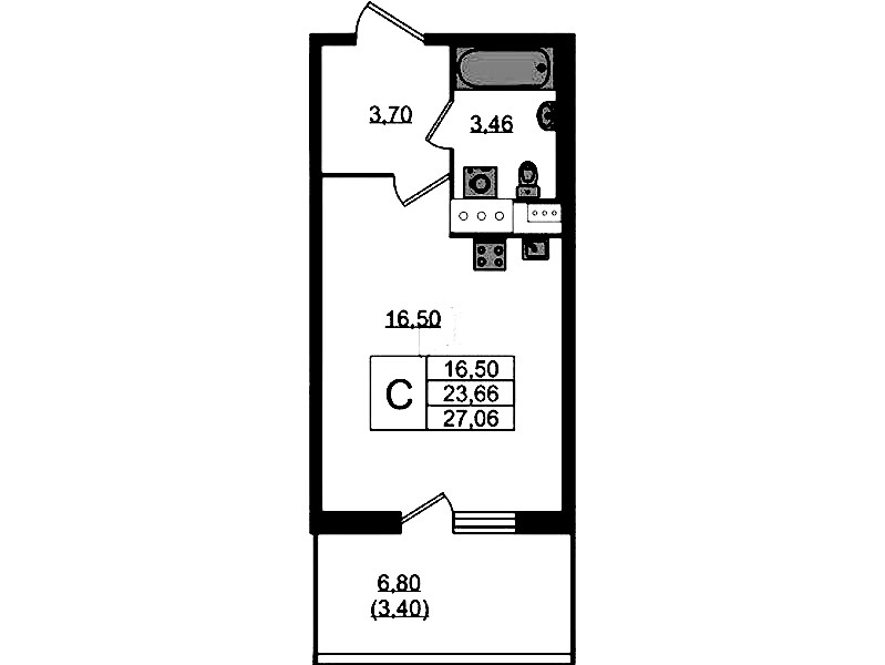 - Площадь27,06 м2