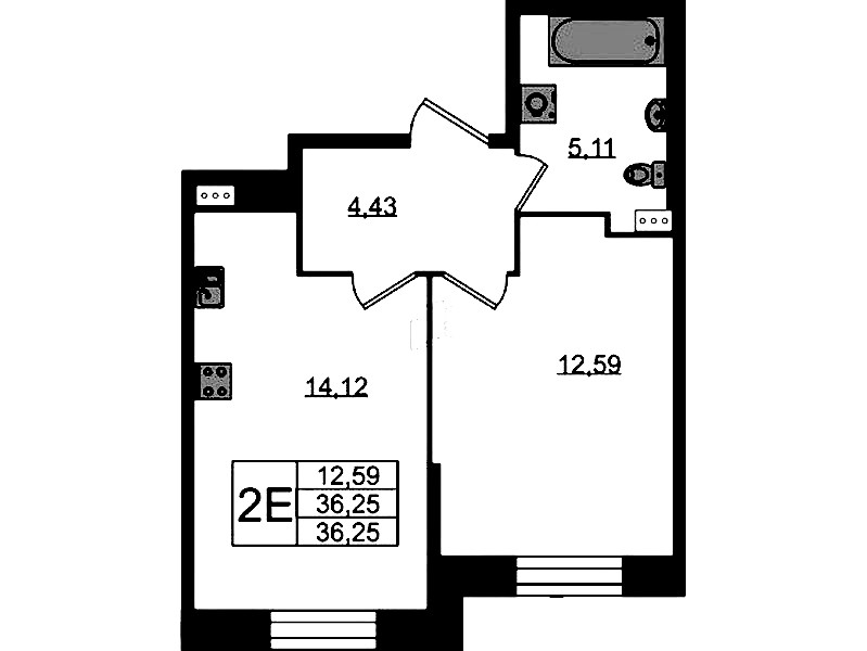 Однокомнатная квартира на 1-ом этаже 36,25 кв.м