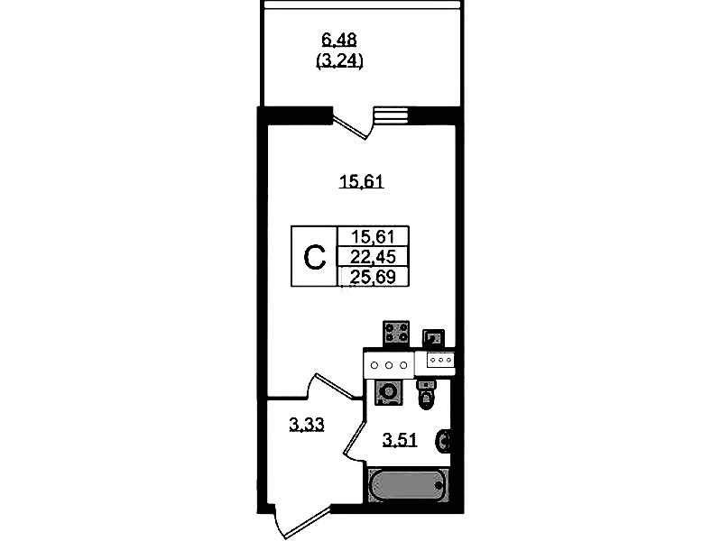 - Площадь25,69 м2