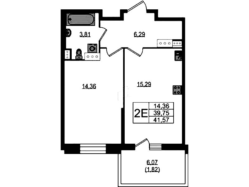 • Площадь кухни15,29 м2