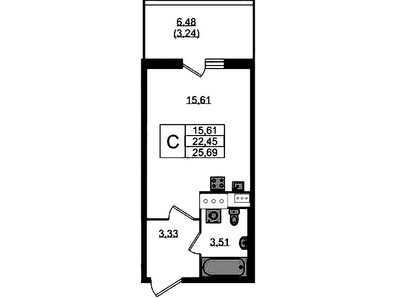 - Площадь24,2 м2
