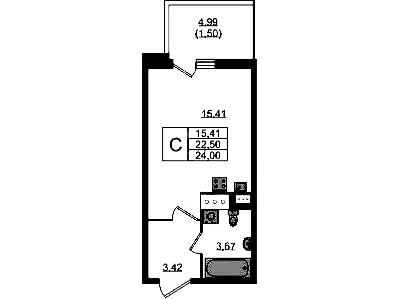 - Площадь23,8 м2