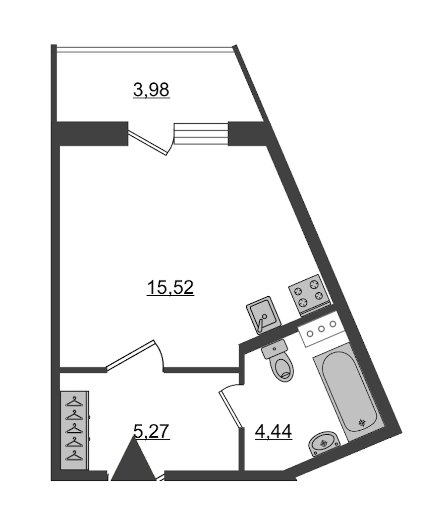 Квартира-студия на 5-ом этаже 27,22 кв.м