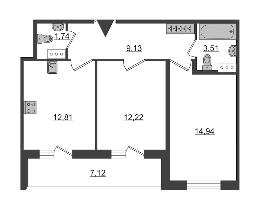 Двухкомнатная квартира на 10-ом этаже 57,91 кв.м