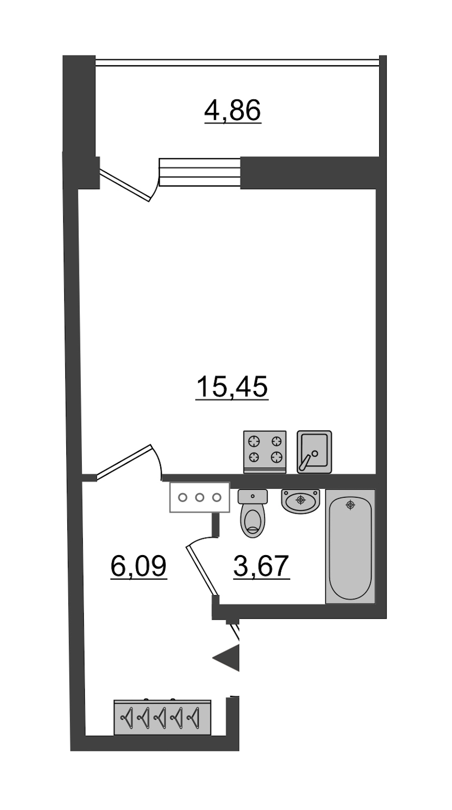 Квартира-студия на 13-ом этаже 27,3 кв.м