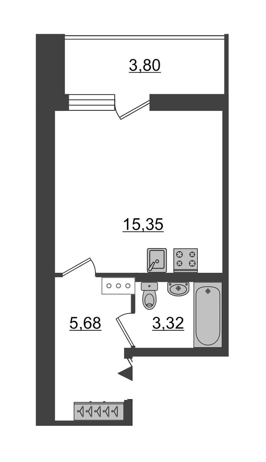 - Площадь26,8 м2