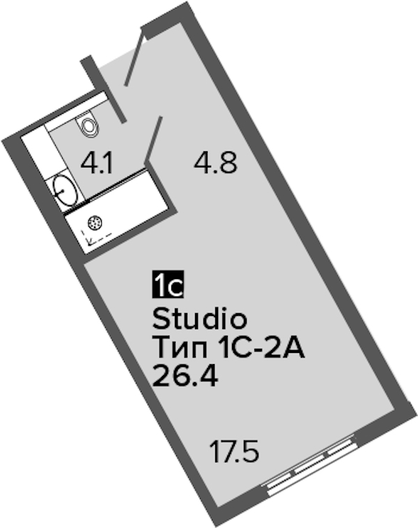Квартира-студия на 3-ем этаже 26,4 кв.м