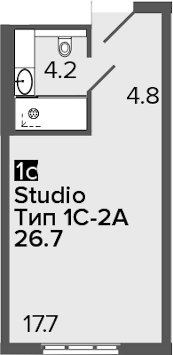 - Площадь26,7 м2