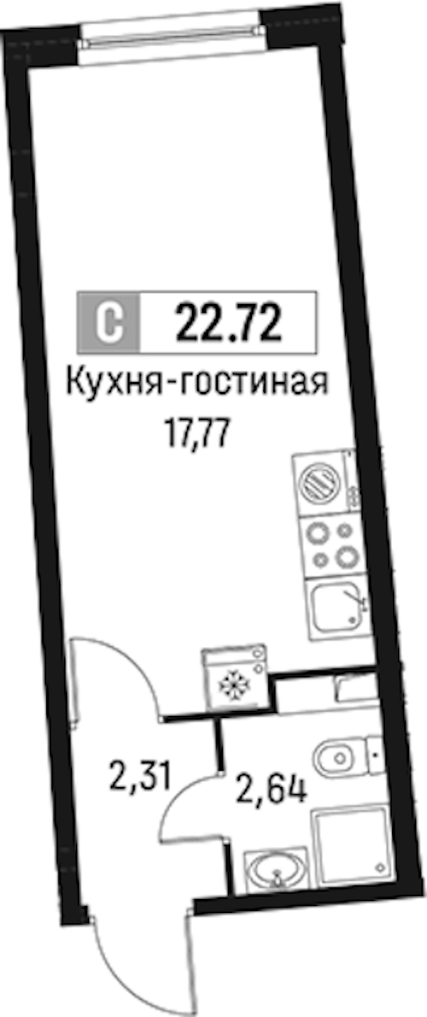 Квартира-студия на 2-ом этаже 22,72 кв.м