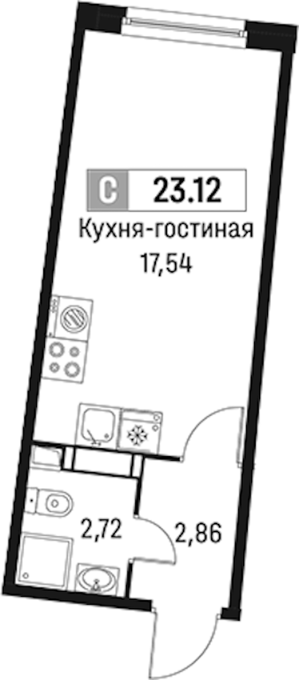Квартира-студия на 3-ем этаже 23,12 кв.м