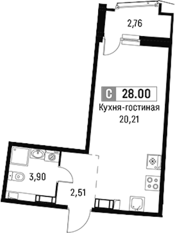 - Площадь28 м2