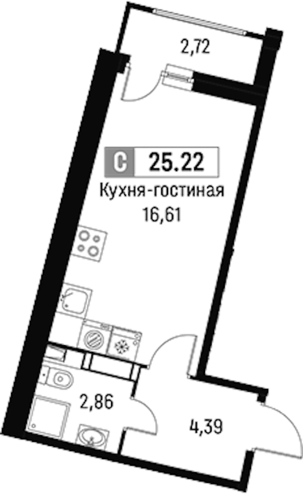 Квартира-студия на 16-ом этаже 25,22 кв.м
