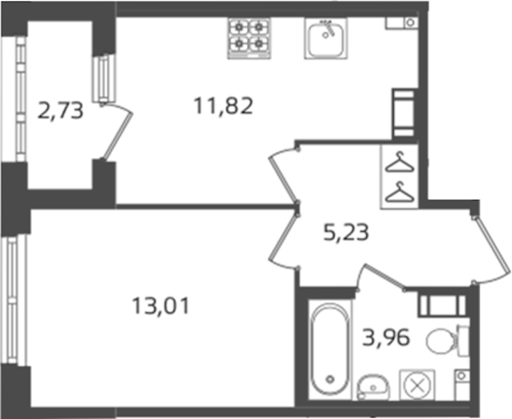 - Площадь кухни11,82 м2
