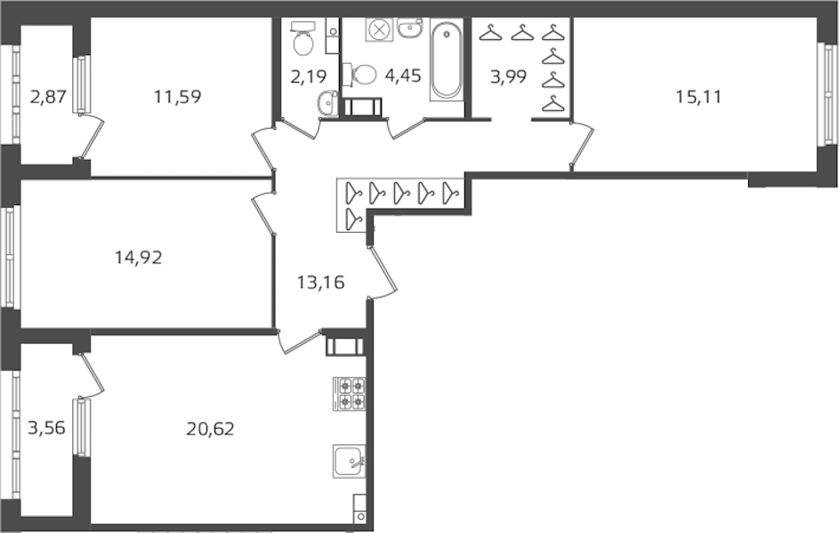 Выше представлены не все варианты квартир, а только часть популярных планировок. Введите данные и получите под ваш запрос планировки, цены, виды из окон и полную информацию по всем подходящим вариантам. 1/5