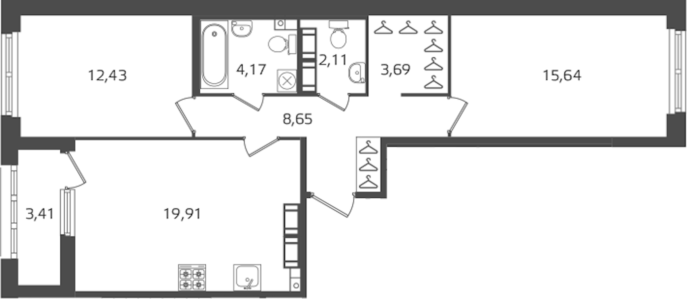 - Площадь кухни19,91 м2