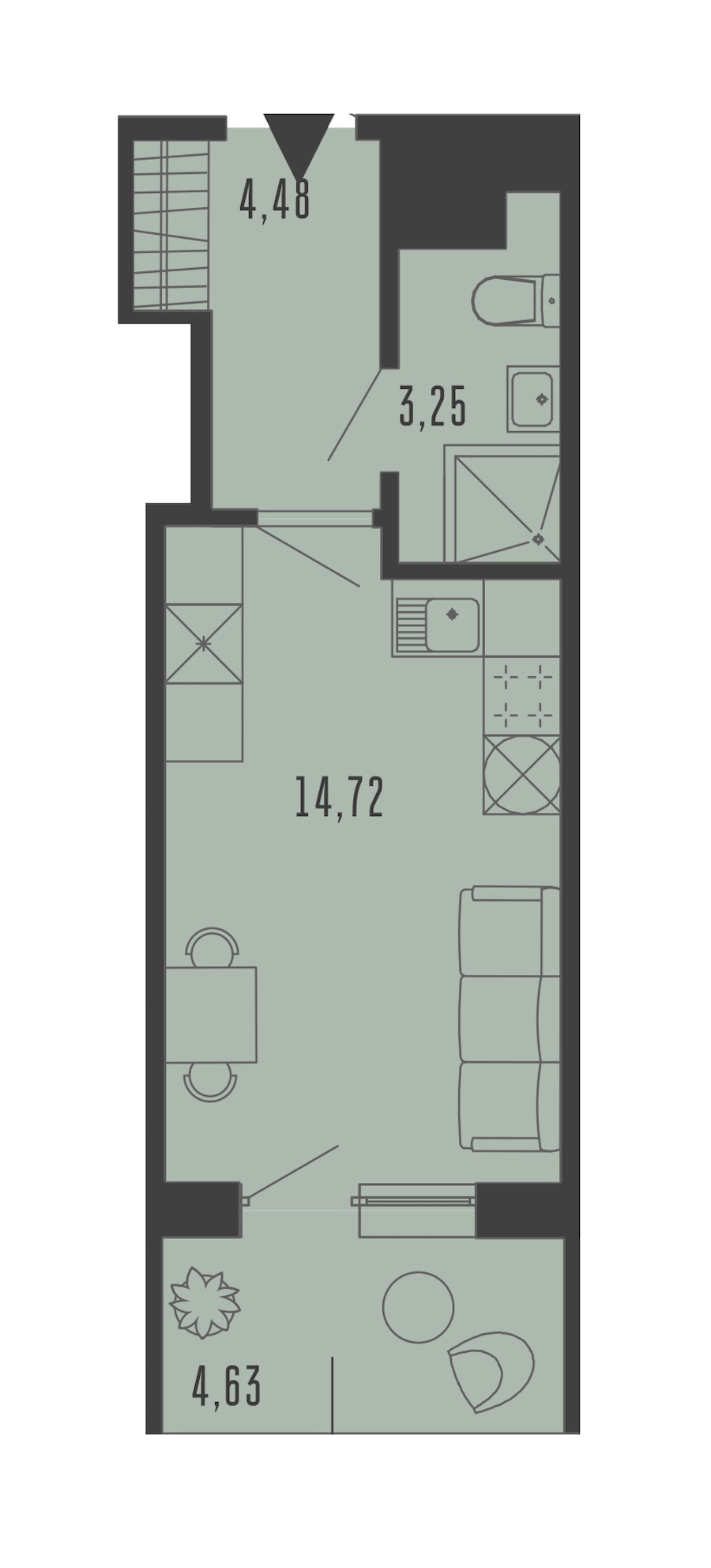 Квартира-студия на 3-ем этаже 23,84 кв.м