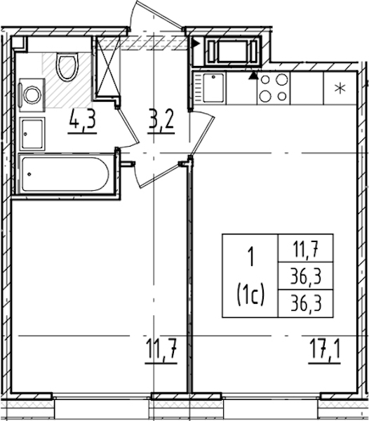 Однокомнатная квартира на 8-ом этаже 36,3 кв.м