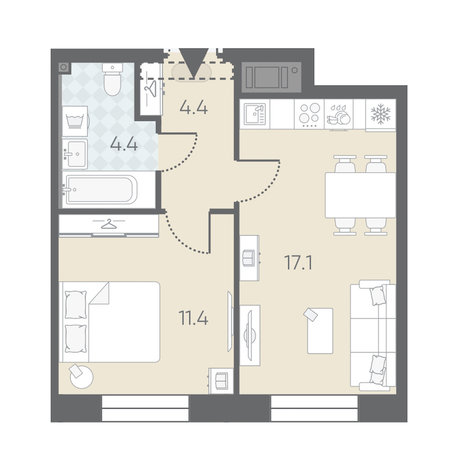 Однокомнатная квартира на 12-ом этаже 37,3 кв.м