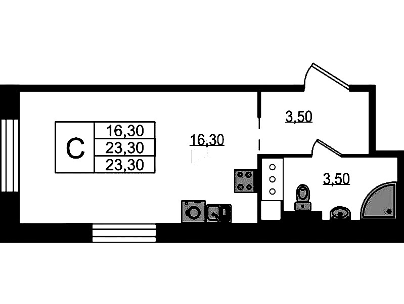 - Площадь23,3 м2