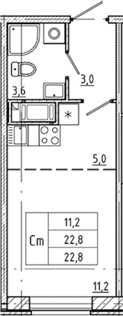 • Площадь22,8 м2