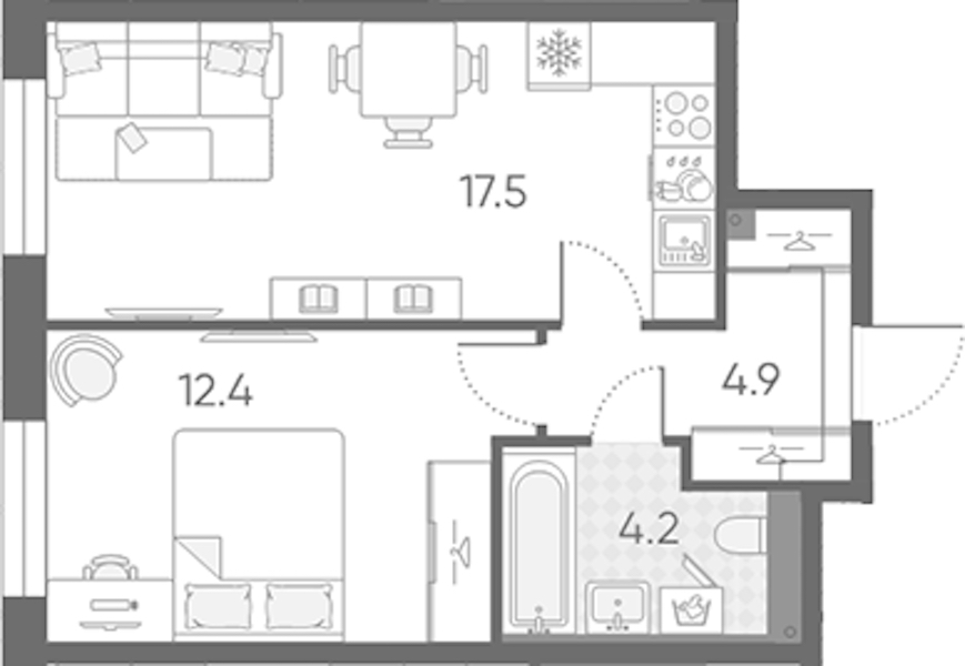 - Площадь кухни17,5 м2