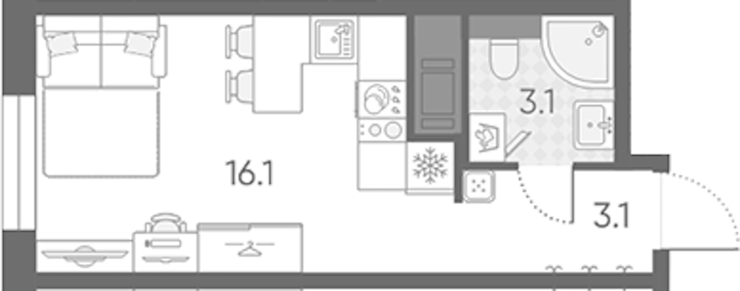 Квартира-студия на 5-ом этаже 22,3 кв.м