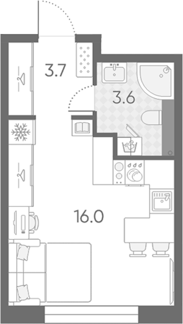 Квартира-студия на 2-ом этаже 23,3 кв.м
