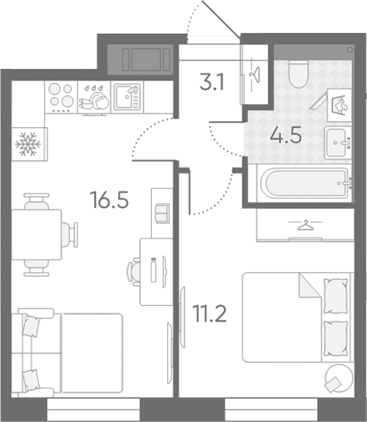- Площадь кухни16,5 м2