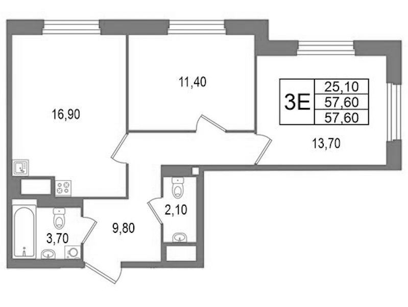 • Площадь57,6 м2