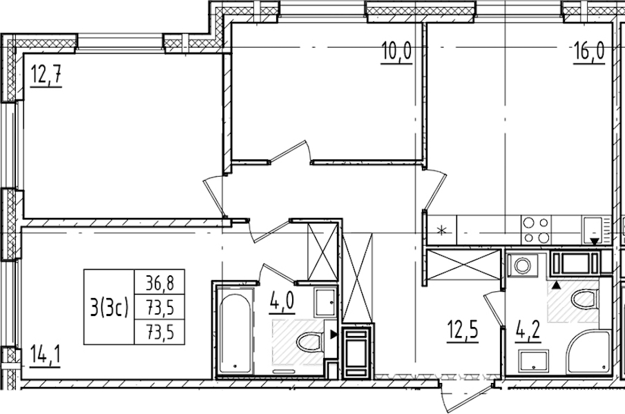 - Площадь73,5 м2