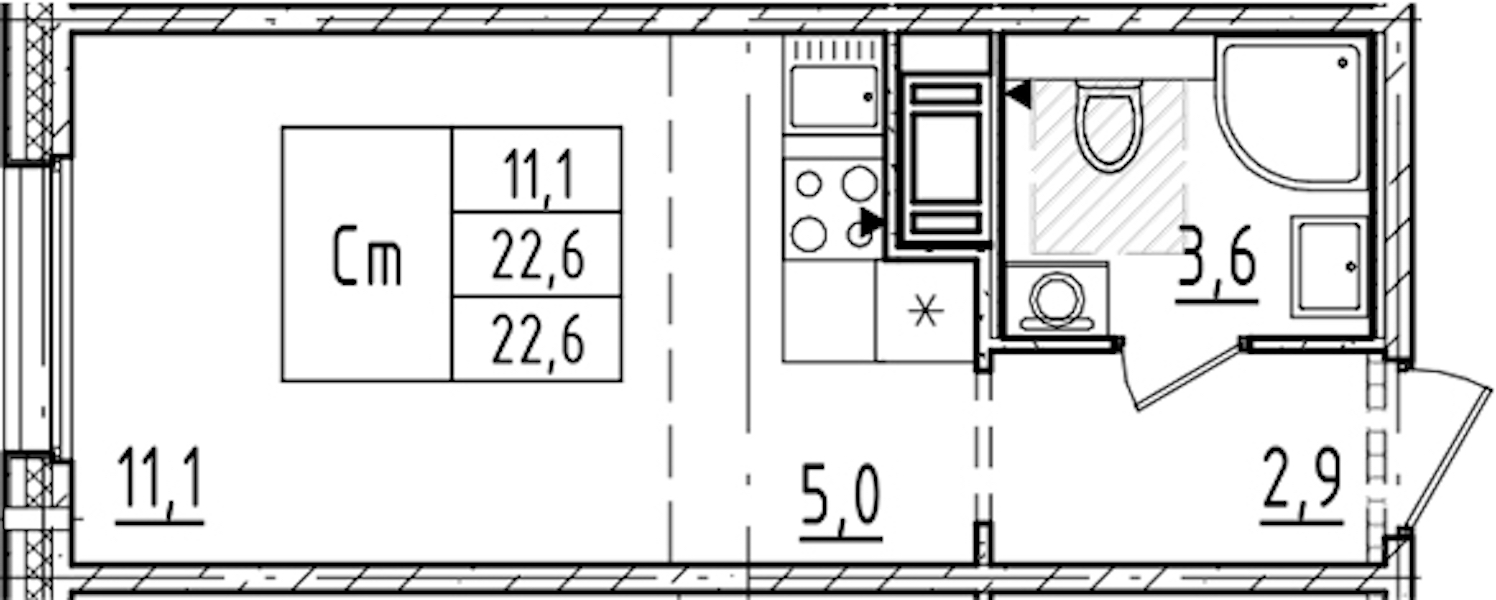 • Площадь22,6 м2