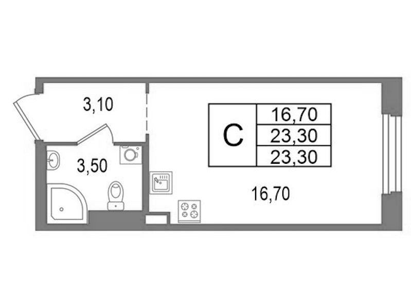 Квартира-студия на 3-ем этаже 23,3 кв.м