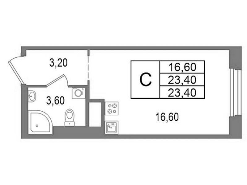 - Площадь23,4 м2