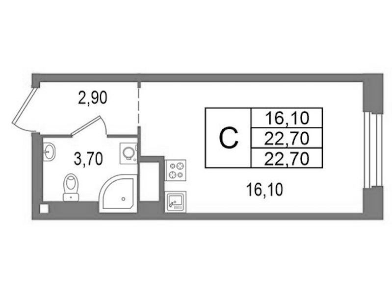 • Площадь22,7 м2