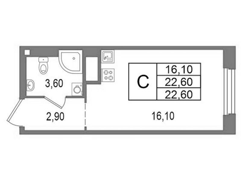 Квартира-студия на 7-ом этаже 22,6 кв.м
