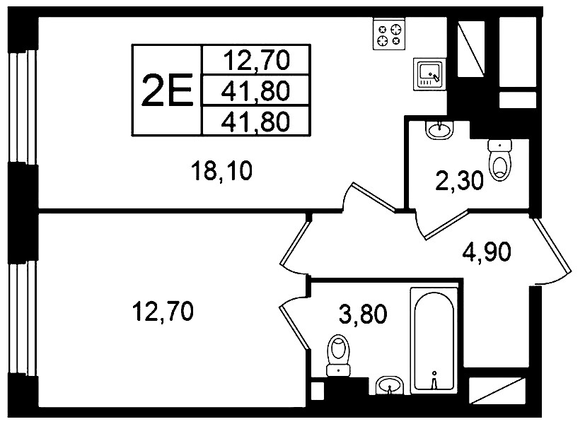 • Площадь41,8 м2