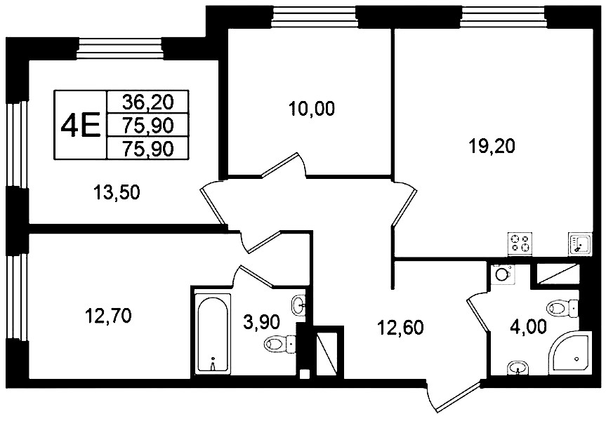Трёхкомнатная квартира на 5-ом этаже 75,9 кв.м