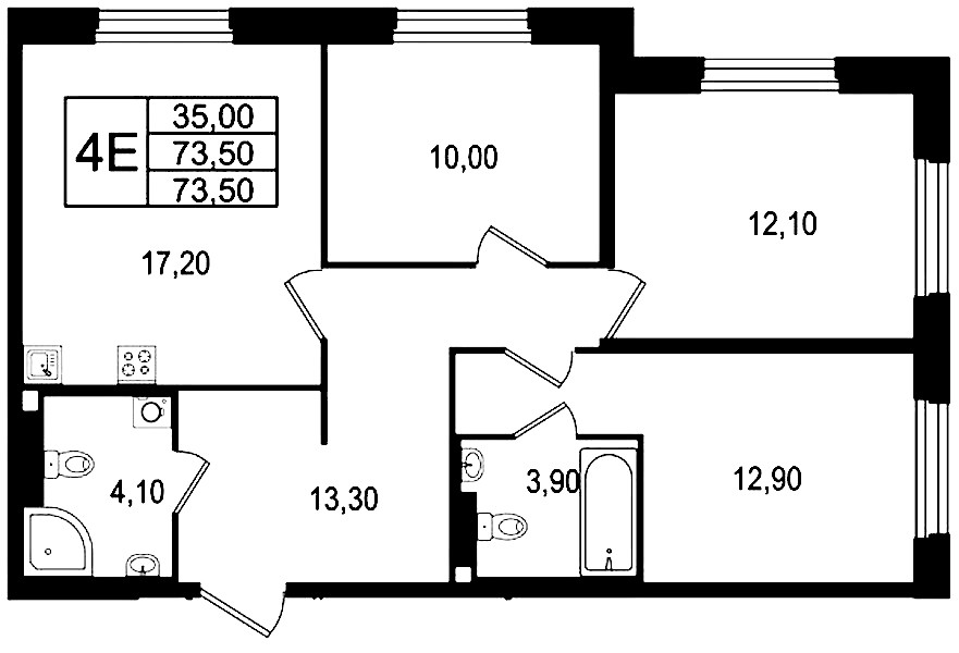 - Площадь73,5 м2