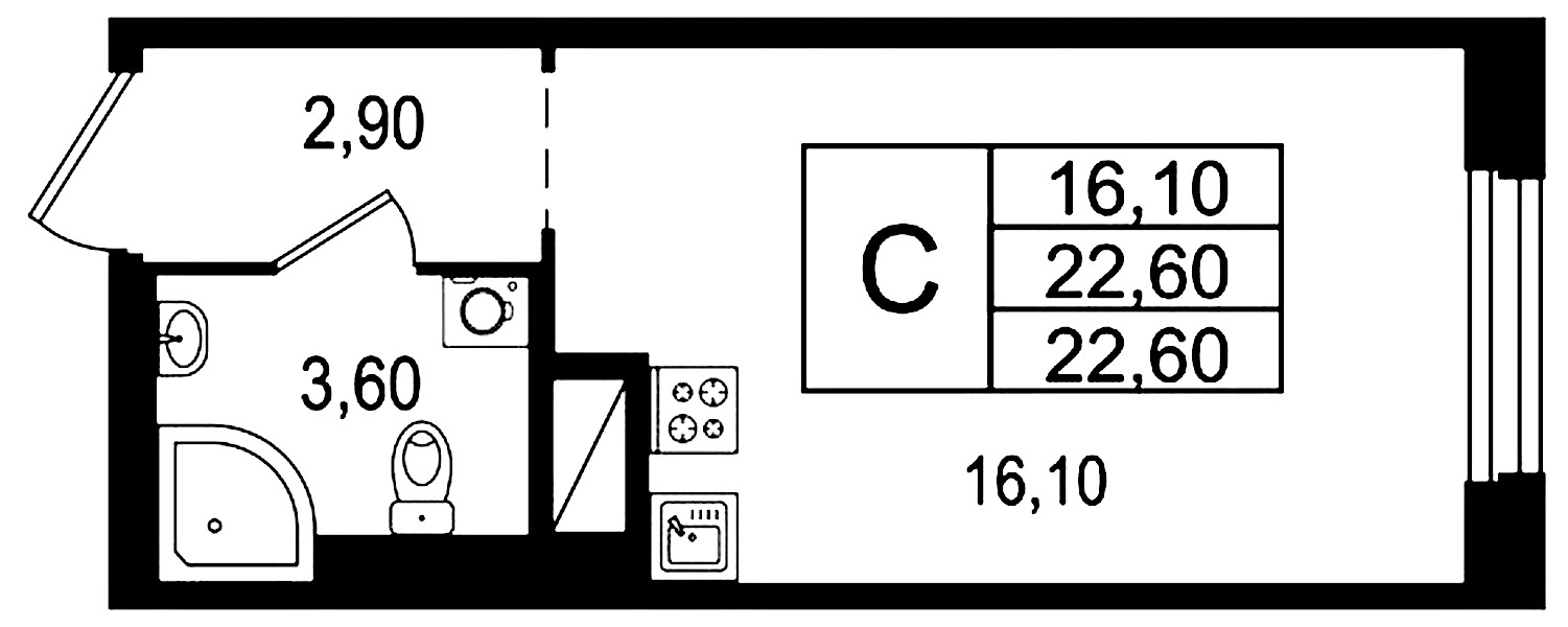 Квартира-студия на 10-ом этаже 22,6 кв.м