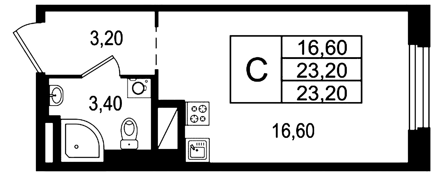 - Площадь23,2 м2