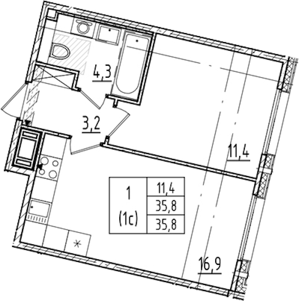 • Площадь35,8 м2